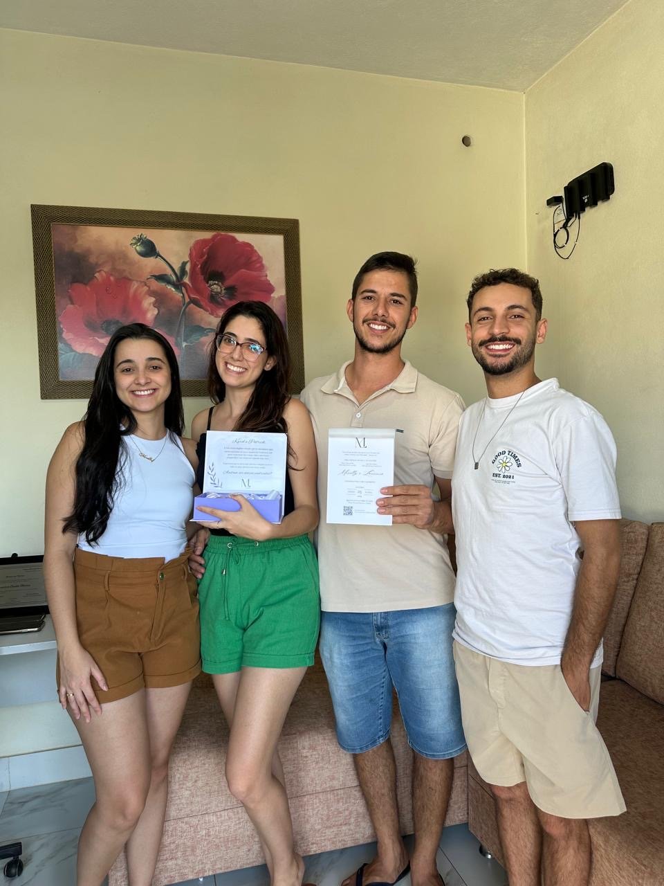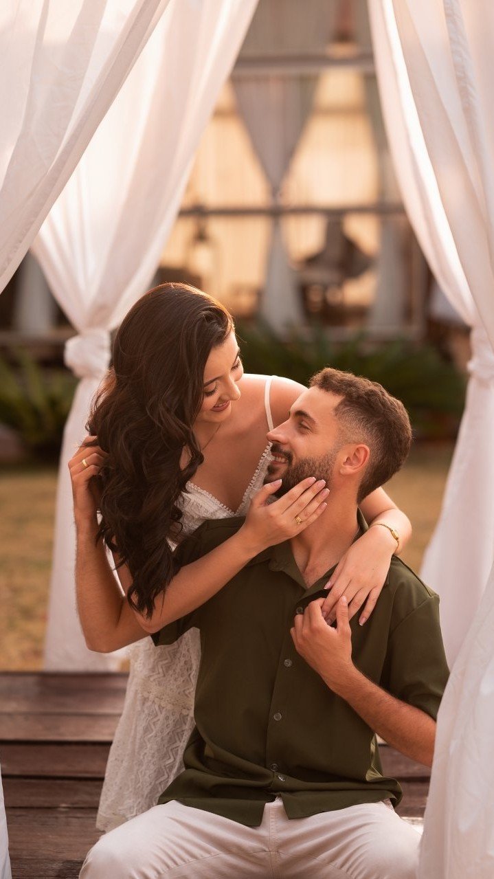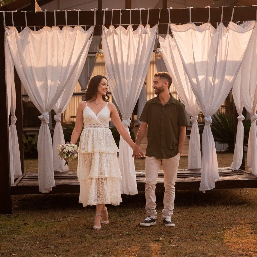 Tudo começou em um churrasco no finalzinho de 2020. Um encontro inesperado, uma conversa que fluiu naturalmente (principalmente porque um dos noivos tem fama de ser engraçadinho rs) e a sensação de que ali havia algo especial. Desde então nossa história tem sido feita de momentos compartilhados, aprendizados, risadas e muito amor.